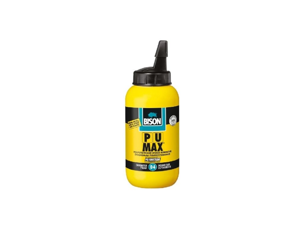 Bison PU MAX este un adeziv poliuretanic lichid de înaltă rezistență pentru rosturi supuse unor solicitări mari. Este destinat lipirii la exterior și interior. Adezivul este rezistent la apă conform standardului ČSN EN 204 D4, la condiții meteorologice și temperaturi de la -20°C la +125°C. Acoperire 5 m2/kg. Nu conține solvenți. Ușor spumos (aprox. 10%) și poate fi acoperit cu un strat protector după întărire. Condiții de lipire: unul dintre materialele lipite trebuie să fie absorbant (poros). DOMENIU DE UTILIZARE: Este destinat lipirii puternice a lemnului dur și moale (inclusiv exotic), PAL, MDF și OSB, PVC, ABS, metale, ipsos, spume dure, spumă de polistiren, materiale izolante, plută etc. pe diverse materiale precum beton, zidărie, lemn, ipsos, plută, cărămizi etc. Este ideal pentru lipirea structurală, de exemplu, a mobilierului de grădină, pergolelor, treptelor scărilor, placajelor din lemn, modelismului și acolo unde structura este expusă la umiditate ridicată și apă. INSTRUCȚIUNI DE UTILIZARE: Suprafețele care urmează să fie lipite trebuie să fie uscate și fără praf. Aplicați adezivul pe o parte cu o spatulă sau o pensulă. Stratul nu trebuie să aibă o grosime mai mare de 1 mm. Prelucrabilitatea adezivului 30 de minute. Îmbinați piesele și apăsați-le ferm sau fixați-le cu cleme timp de cel puțin 4 ore (presiunea recomandată este de 2 - 5 kg/cm2). Îmbinarea își va atinge rezistența funcțională după 24 de ore. Adezivul neîntărit poate fi îndepărtat cu acetonă, adezivul întărit doar mecanic. SFAT: După 2-3 ore, îndepărtați excesul de spumă, încă neîntărită complet, care se extinde din îmbinare, cu un cuțit ascuțit. După întărire completă, îndepărtarea este foarte dificilă. IMPORTANT: Nu utilizați la temperaturi sub +5°C. Conținut de umiditate recomandat al lemnului: 10% până la 18% (max. 25%). După utilizare, închideți bine ambalajul și depozitați-l într-un loc uscat, răcoros, ferit de îngheț, la o temperatură de +10°C până la +20°C. Termenul minim de valabilitate este de 18 luni. Se poate scurta după deschidere.Parametri suplimentari