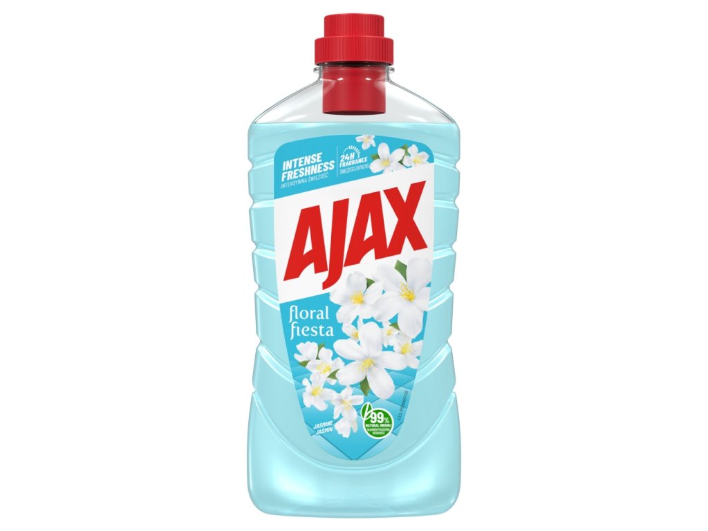 Soluție de curățare universală Ajax cu uleiuri esențiale pentru suprafețe strălucitoare și o casă plăcut de proaspătă până la 24 de ore după curățare. Soluția de curățare este potrivită pentru toate suprafețele din casă.