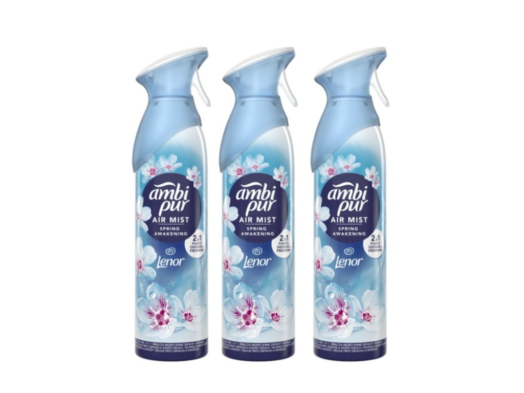 Odorizantul de cameră Ambi Pur cu tehnologia OdourClear elimină mirosurile persistente neplăcute și lasă un parfum ușor și proaspăt. Spring Awakening este un parfum verde deschis inspirat de prospețimea naturală a primăverii de la Lenor.