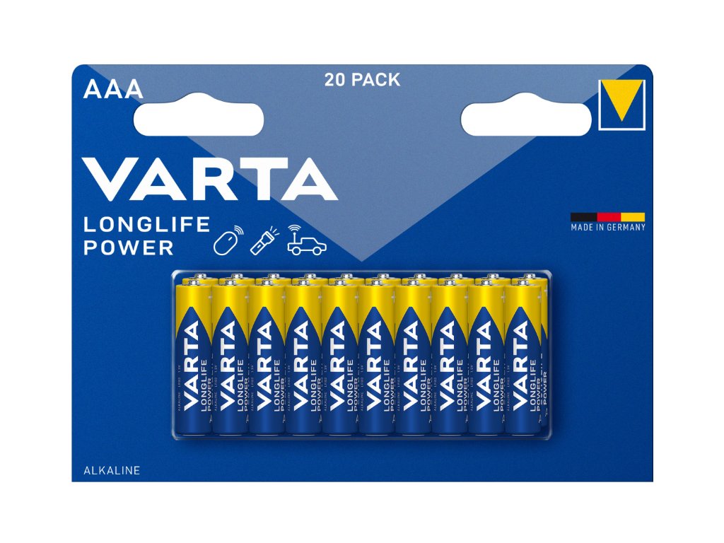Bateriile alcaline Varta Longlife Power AAA sunt o sursă fiabilă de alimentare pentru dispozitivele cu consum mai mare de energie. Datorită tehnologiei moderne, acestea oferă performanțe stabile și o autonomie îndelungată, fiind ideale pentru utilizarea zilnică acasă și la birou. Sunt potrivite pentru jucării, mouse-uri wireless, tastaturi, lanterne LED, controllere de jocuri sau alte dispozitive electronice.