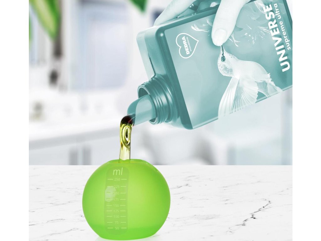 Dozare ecologică. Și silențioasă. Bila de spălat GoEco® este un dozator reutilizabil din silicon pentru geluri și pulberi de spălat. Datorită siliconului moale, nu se lovește de tamburul mașinii de spălat precum bilele clasice de plastic și totuși își păstrează forma chiar și la temperaturi extrem de ridicate. 🔇 SPĂLARE SILENȚIOSĂ, fără lovituri Gata cu loviturile la spălare! Siliconul absoarbe mișcarea și lasă tamburul silențios 🧴 Dozare ideală, fără mizerie Scala marcată facilitează dozarea Volum de până la 250 ml Se reține și se reumple perfect 🌡️ Durabilitate și durabilitate Potrivit până la 95 °C (fierbere) Silicon testat până la 230 °C Nu se deformează nici după spălări repetate ♻️ Avantaje ecologice Reutilizabil - economisiți natură și bani Parte din seria GoEco® - gospodărie ecologică fără compromisuri 📏 Dimensiuni: Volum: max. 250 ml Diametru: aprox. 9 cm Înălțime: aprox. 7 cmParametri suplimentari