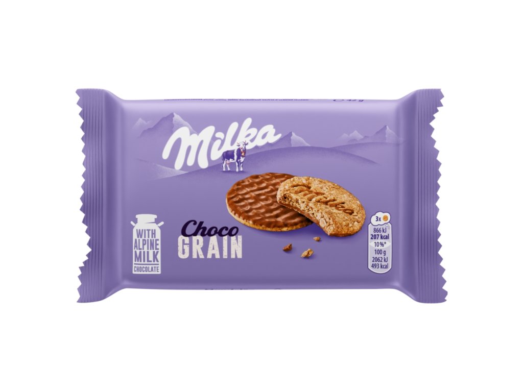 Biscuite semi-învelite în cereale Milka Choco Grain, ciocolată cu lapte 42g