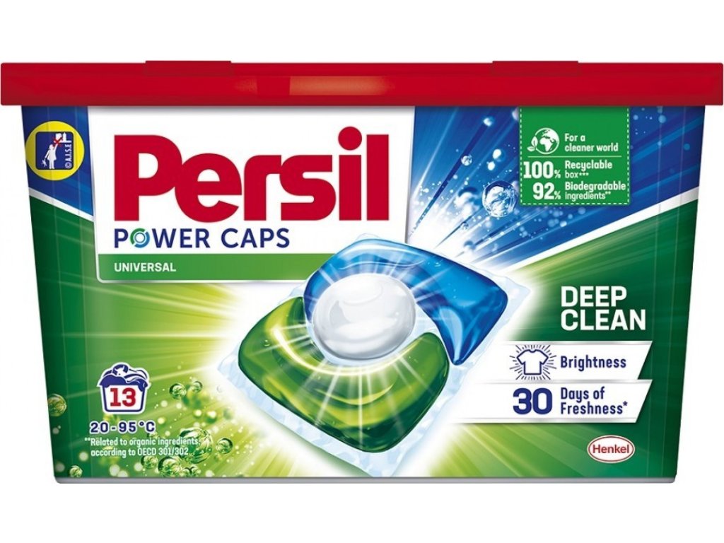 Capsulele Persil Power cu tehnologie Deep Clean conțin o combinație unică de ingrediente active care acționează împotriva petelor încăpățânate. Detergentul pătrunde adânc în fibre și îndepărtează chiar și cele mai mici molecule de murdărie pentru un rezultat perfect și haine strălucitoare și curate. Răsfață-te cu o curățenie perfectă și o prospețime de lungă durată cu Persil. Capsulele Persil Power sunt eficiente chiar și la spălarea la temperaturi scăzute, de la 20 °C.