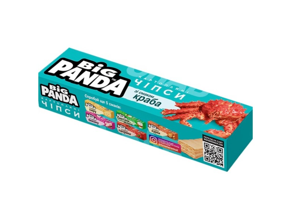 Chipsuri de cartofi extra lungi cu o aromă delicată de fructe de mare și crab — crocante și aromate pentru o experiență gourmet extraordinară.Ingrediente: Piure de cartofi deshidratat 34% (cartofi proaspeți 99,4%, emulgator: mono- și digliceride ale acizilor grași (E 471), stabilizator: difosfat de sodiu (E 450), acid citric (E 330), palmitat de ascorbil (E 304), conservant: metabisulfit de sodiu (E 223), turmeric), ulei de floarea soarelui, făină de grâu (gluten), făină de porumb, amestec de aromă de crab (sare, zahăr, dextroză, potențiatori de aromă - glutamat monosodic (E 621), E 627, E 631, aromă, extract de drojdie, colorant - boia de ardei (E 160c), acid citric (E 330)), sare. Poate conține urme de muștar, țelină, soia și semințe de susan.