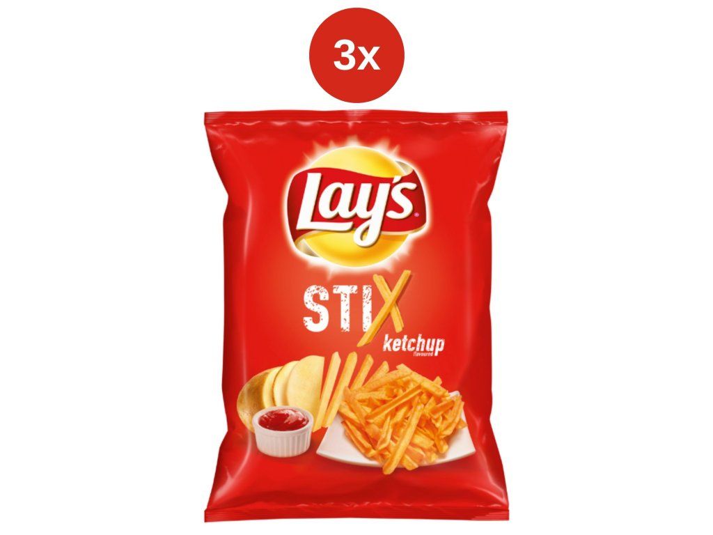 Bețișoarele crocante de cartofi Lay's Stix Ketchup sunt bețișoare crocante de cartofi cu o aromă distinctă de ketchup, care combină note dulci, acrișoare și ușor picante. Datorită formei lor subțiri, sunt extra crocante și reprezintă o alternativă ideală la chipsurile clasice.
