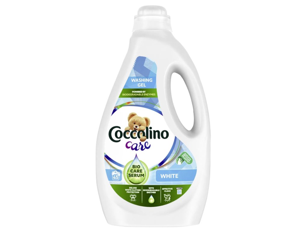 Coccolino Care White este un balsam de rufe conceput pentru spălarea rufelor albe, cu o capacitate de 1,8 l , ceea ce corespunde la aproximativ 45 de spălări . Acest produs ajută la înmuierea țesăturilor , reduce electricitatea statică și lasă rufele moi și plăcute la atingere . Coccolino adaugă, de asemenea, un parfum proaspăt de lungă durată rufelor și facilitează călcarea.