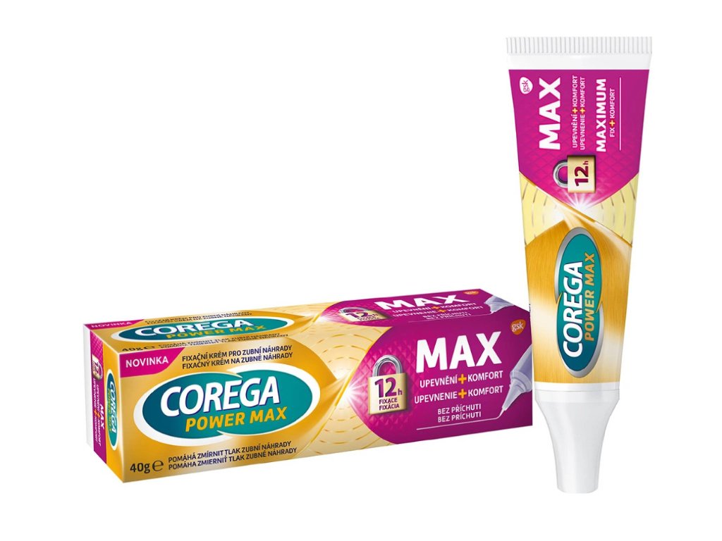 Corega Power-Max Fixation + Comfort este o cremă de fixare a protezelor dentare de 70 g, concepută pentru a asigura o fixare fermă și stabilă a protezelor mobile în timpul purtării. Crema creează o fixare puternică și de lungă durată , care ajută la prevenirea deplasării sau slăbirii protezei în timpul vorbirii și al meselor. Produsul este conceput pentru a umple golurile dintre proteză și gingii , ceea ce crește confortul la purtare și reduce riscul ca alimentele să ajungă sub proteză.