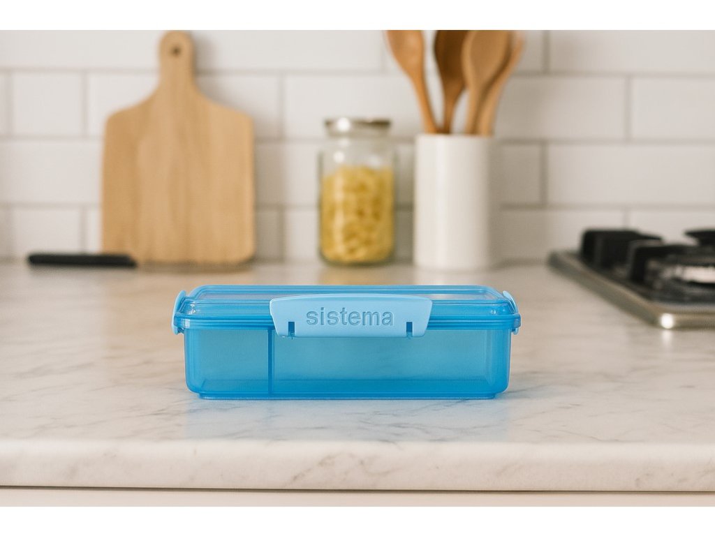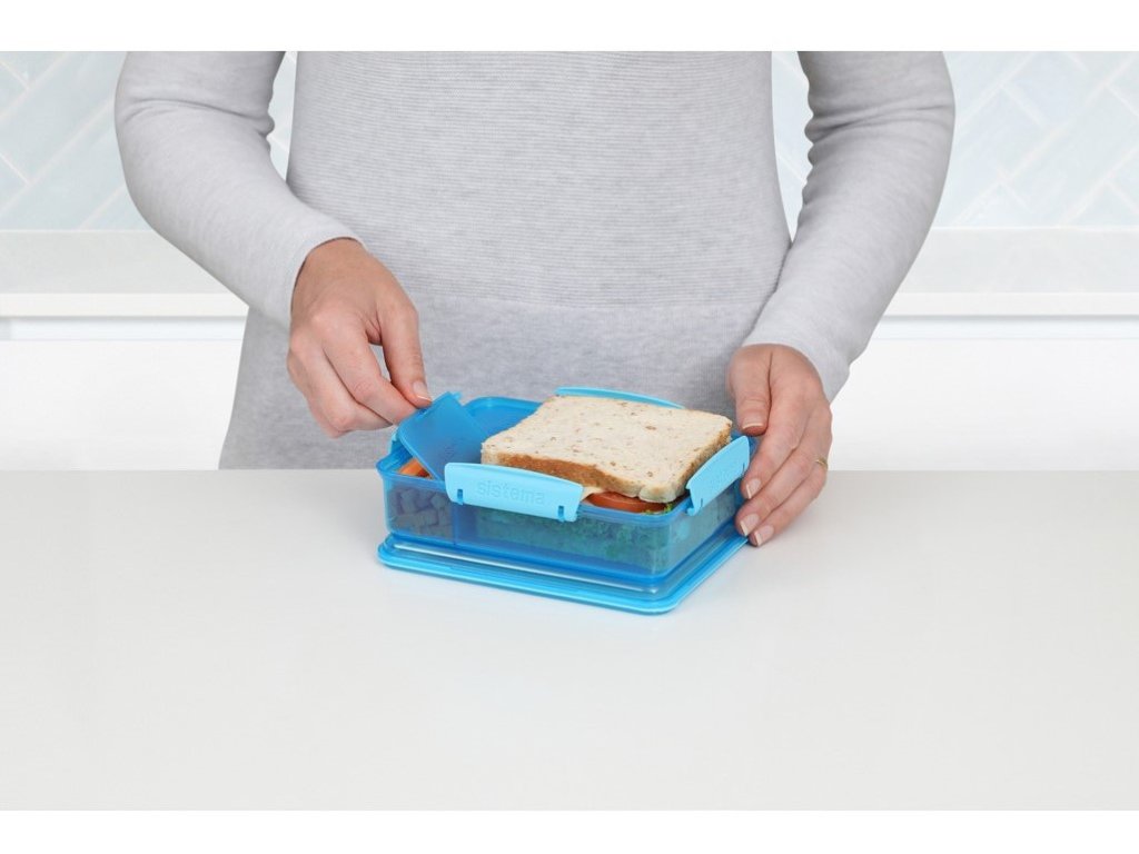 Cutie de gustări Sistema Lunch Snack Attack Duo cu 2 compartimente separate, 975 ml, albastră