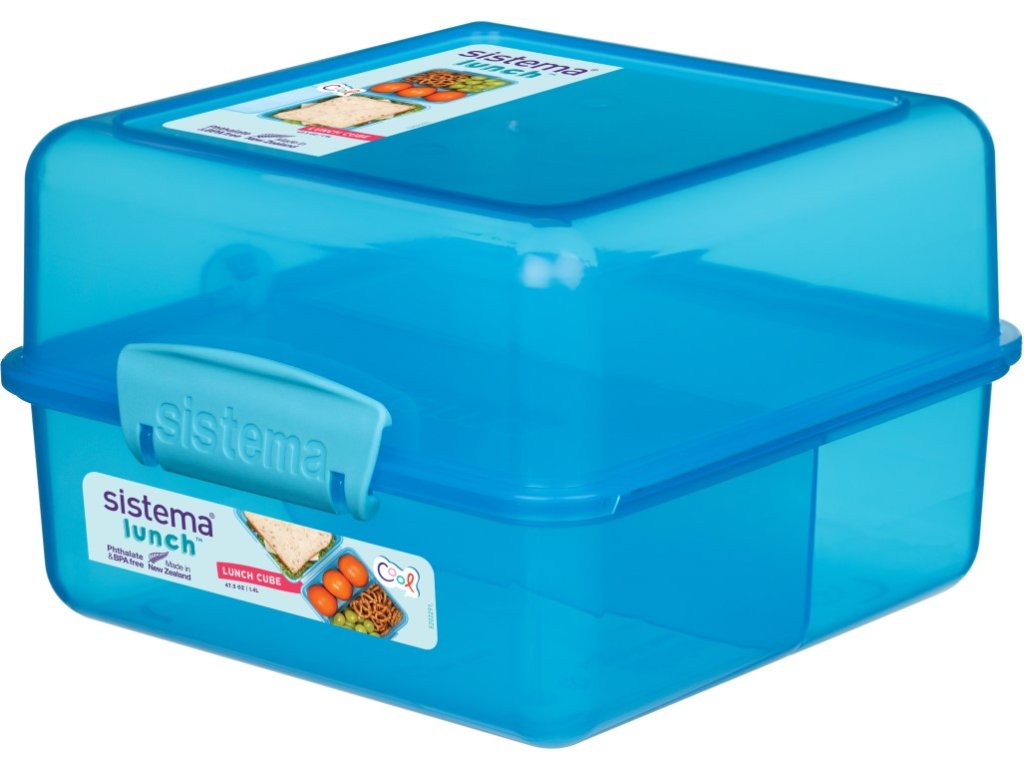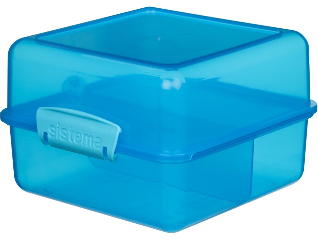 Cutie de prânz divizată Sistema Lunch Cube cu 2 compartimente 1,4 L, albastră