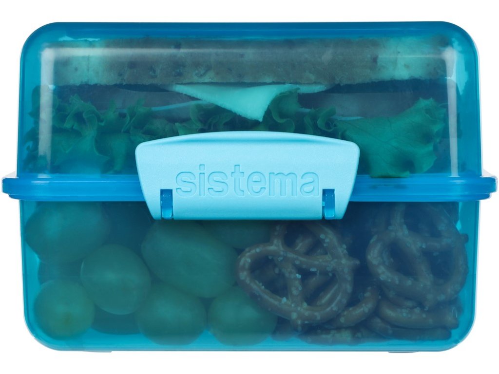 Cutia este alcătuită din două niveluri, oferind mult spațiu pentru un prânz variat și echilibrat. Compartimentul mare este ideal pentru depozitarea sandvișurilor, în timp ce compartimentele mai mici sunt excelente pentru fructe, legume, nuci sau alte gustări mici. Beneficii: • Ideală pentru copii • Ușor de încuiat: Clemă Sistema® • Spațioasă și practicăParametri suplimentari
