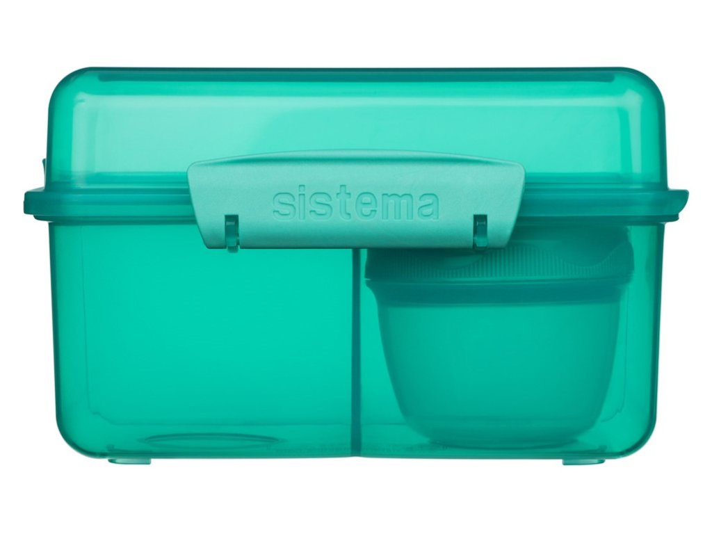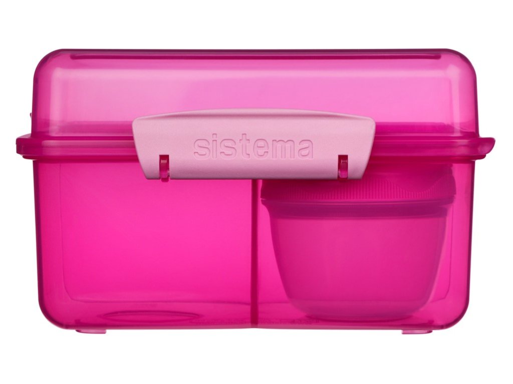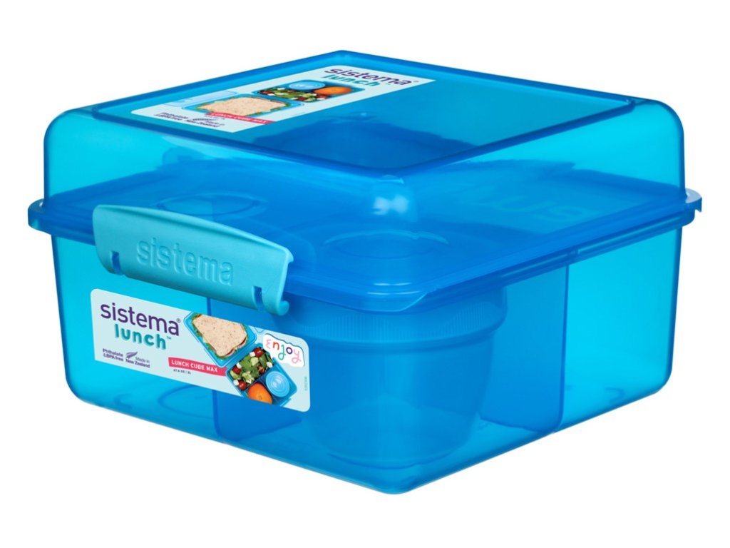 Cutie de prânz Sistema Lunch Cube Max, cu gustări divizate, recipient pentru iaurt și capac dublu, 2 l, culori mixte