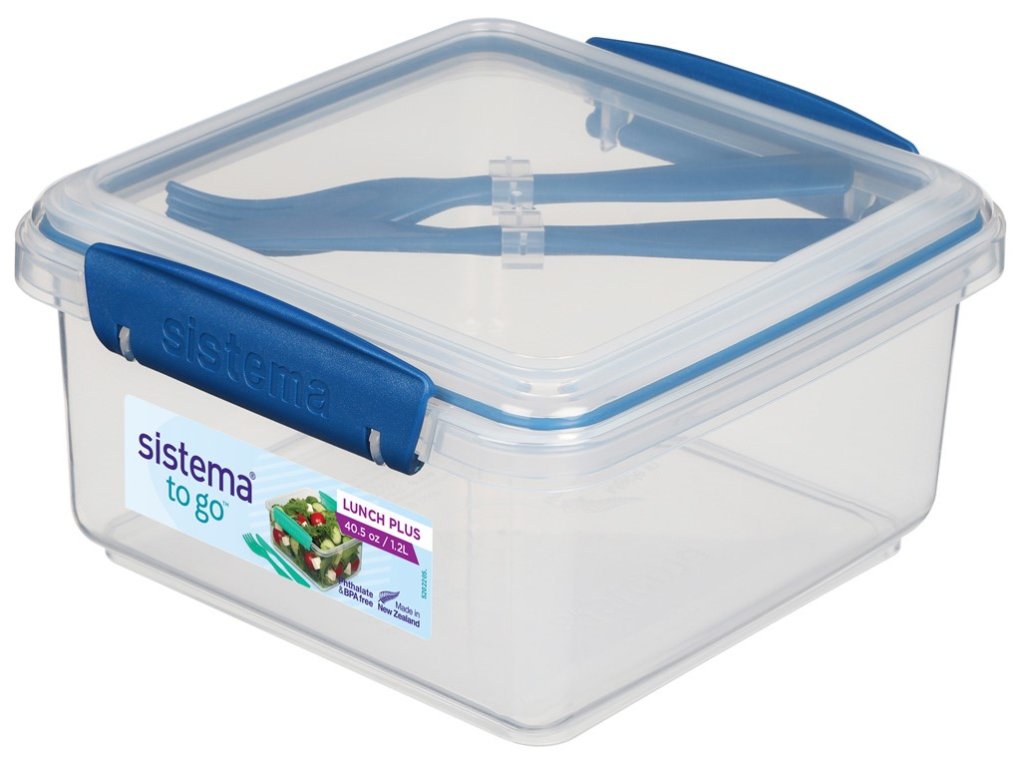 Cutie de prânz Sistema To Go Lunch Plus 1,2 l cu tacâmuri, albastră