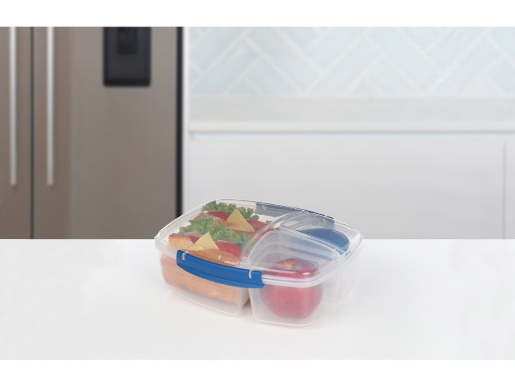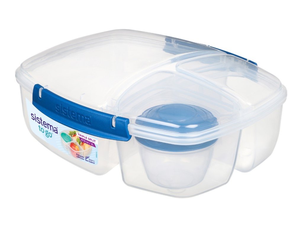 Cutie de prânz Sistema To Go Triple Split cu recipient pentru iaurt de 2 litri, albastră