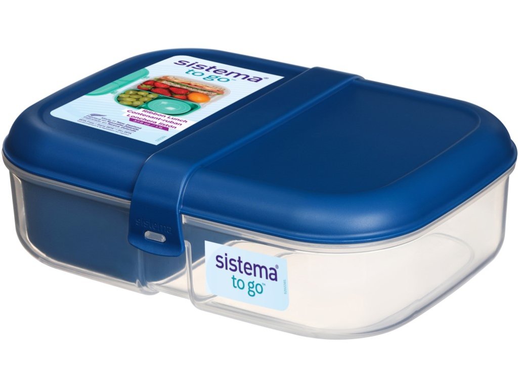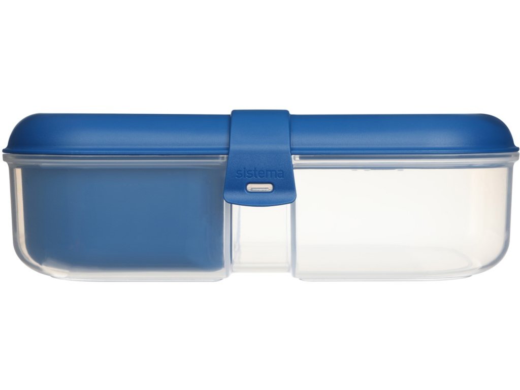 Cutie pentru gustări Sistema To Go cu panglică, divizată, cu recipient pentru iaurt de 1,1 l, albastră