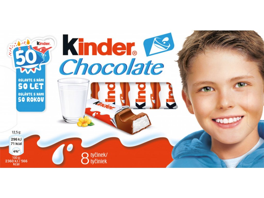 Cu umplutura sa delicioasă și cremoasă cu lapte, Kinder Chocolate este delicatesa perfectă – creată special pentru copii și mame fericite. Kinder Chocolate nu conține coloranți artificiali sau grăsimi hidrogenate. Fiecare baton pentru copii este ambalat individual.