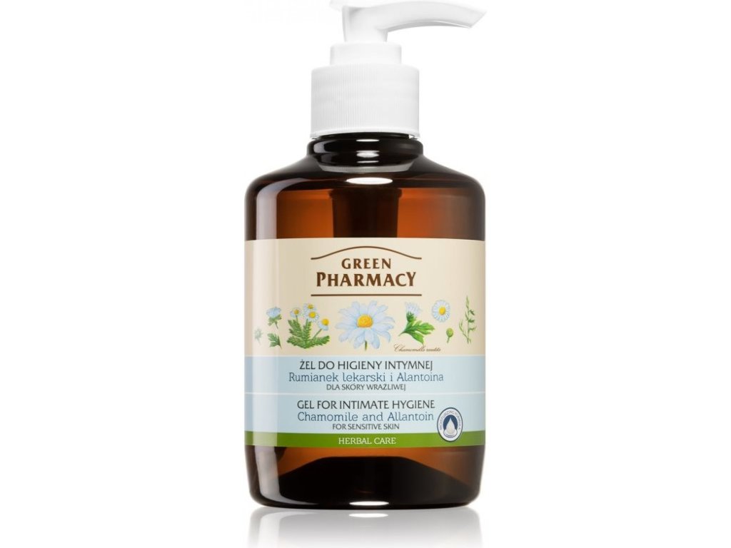 Gel de igienă intimă Green Pharmacy Body Care cu mușețel și alantoină pentru piele sensibilă (0% parabeni, coloranți artificiali) 370 ml
