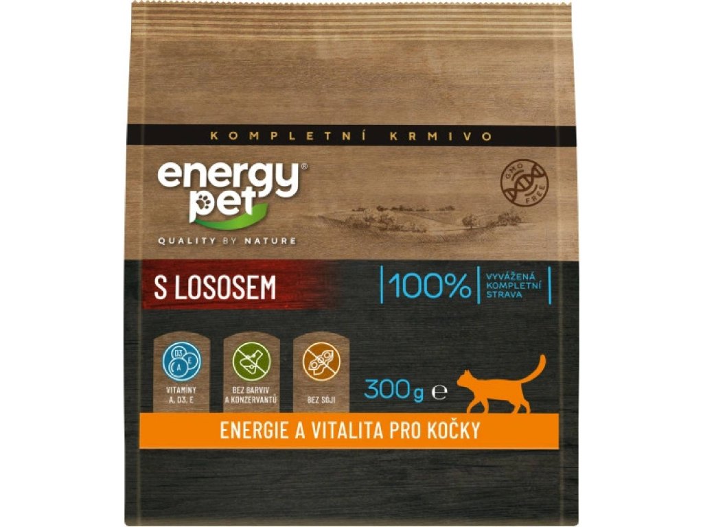 Energy Pet cu somon va satisface chiar și cea mai pretențioasă pisică. Este o hrană completă pentru pisicile adulte de toate rasele. Nu conține coloranți sau conservanți.
