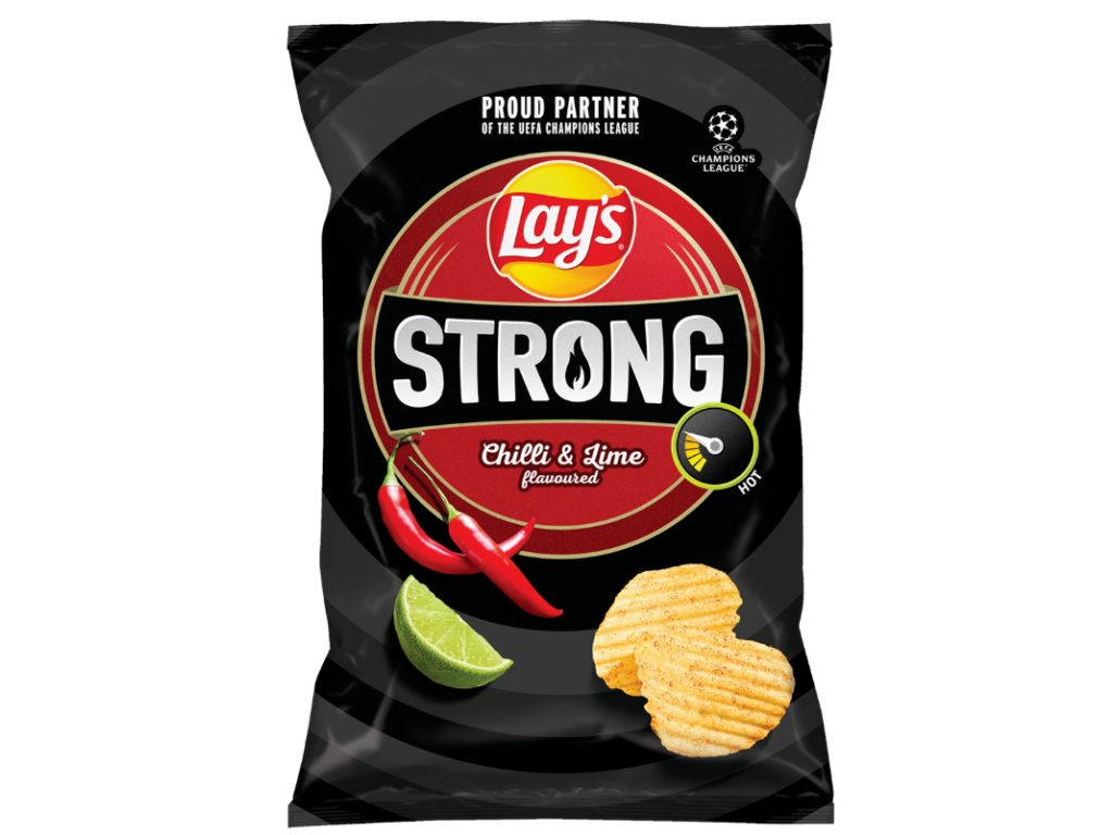 Lay's Strong Chilli & Lime sunt chipsuri de cartofi prăjiți cu o aromă intensă și distinctă, care combină iuțeala ardeilor iuți cu aciditatea răcoritoare a lime-ului. Această combinație creează un profil de aromă echilibrat, ideal pentru iubitorii de gustări picante.