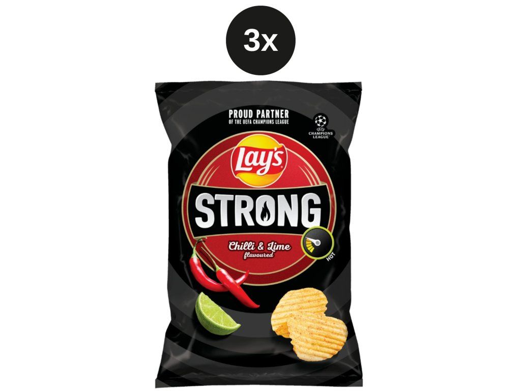 Lay's Strong Chilli & Lime sunt chipsuri de cartofi prăjiți cu o aromă intensă și distinctă, care combină iuțeala ardeilor iuți cu aciditatea răcoritoare a lime-ului. Această combinație creează un profil de aromă echilibrat, ideal pentru iubitorii de gustări picante.