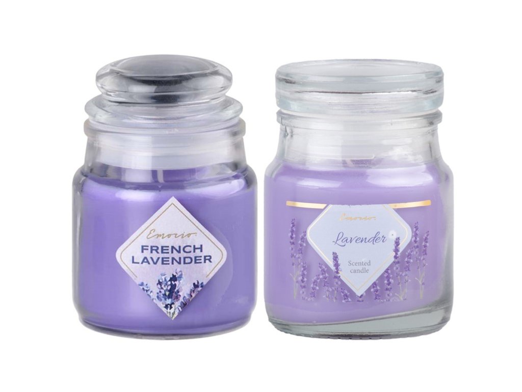Lumânare parfumată Emocio în sticlă Lavandă cu capac de sticlă 57x85mm