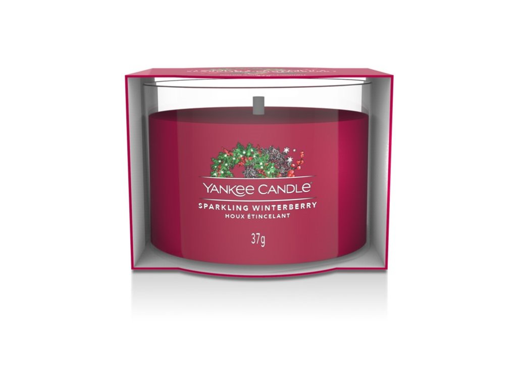 LUMÂNARE VOTIVĂ YANKEE CANDLE UMPLUTĂ ÎN STICLĂ CU AROMĂ DE WINTERBERRY SCÂNTĂTOARE