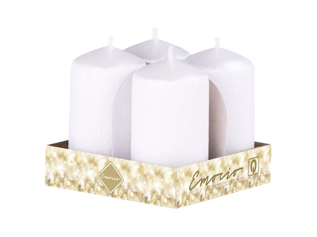 Lumânări cilindrice Emocio Advent 4 buc 40x75 alb perlat zgâriat