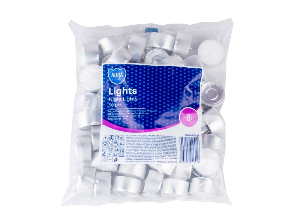 Conținutul pachetului: 50 de lumânări tip pastilă, neparfumate.