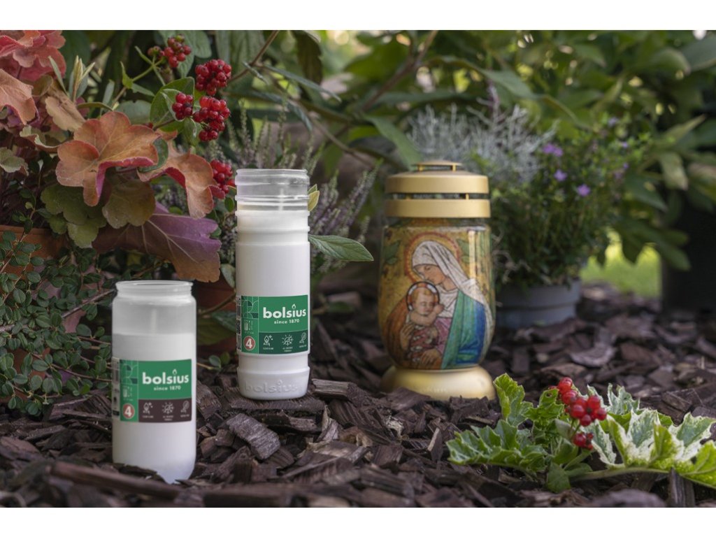 Mozaic Maria, sticlă de cimitir Bolsius, depozit 23 cm, 120g, 36h