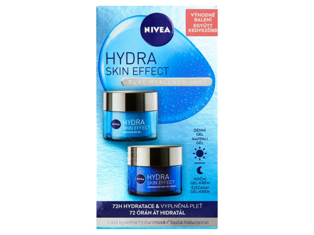 Nivea Hydra Skin Effect gel-cremă de zi 50 ml + gel-cremă hidratantă de noapte 50 ml, pachet duo
