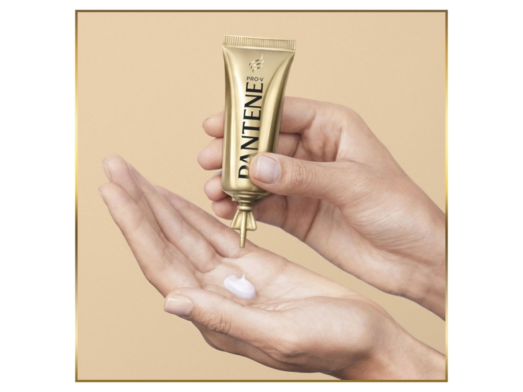 1. După ce v-ați spălat părul cu șampon Pantene, puneți fiola Pantene Pro-V în palmă.