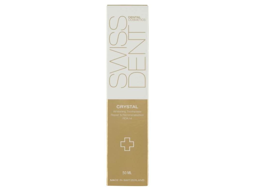 Pasta de dinți regenerantă Swissdent Crystal vă va oferi dinților un efect de albire superb. În același timp, restaurează structura smalțului dentar și reduce sensibilitatea dentară. Pasta de dinți este ideală și ca peeling regenerant de noapte pentru albirea dinților acasă sau la birou. Compoziția este potrivită în special pentru dinții sensibili sau albiți frecvent. Nu conține peroxizi și fluoruri.
