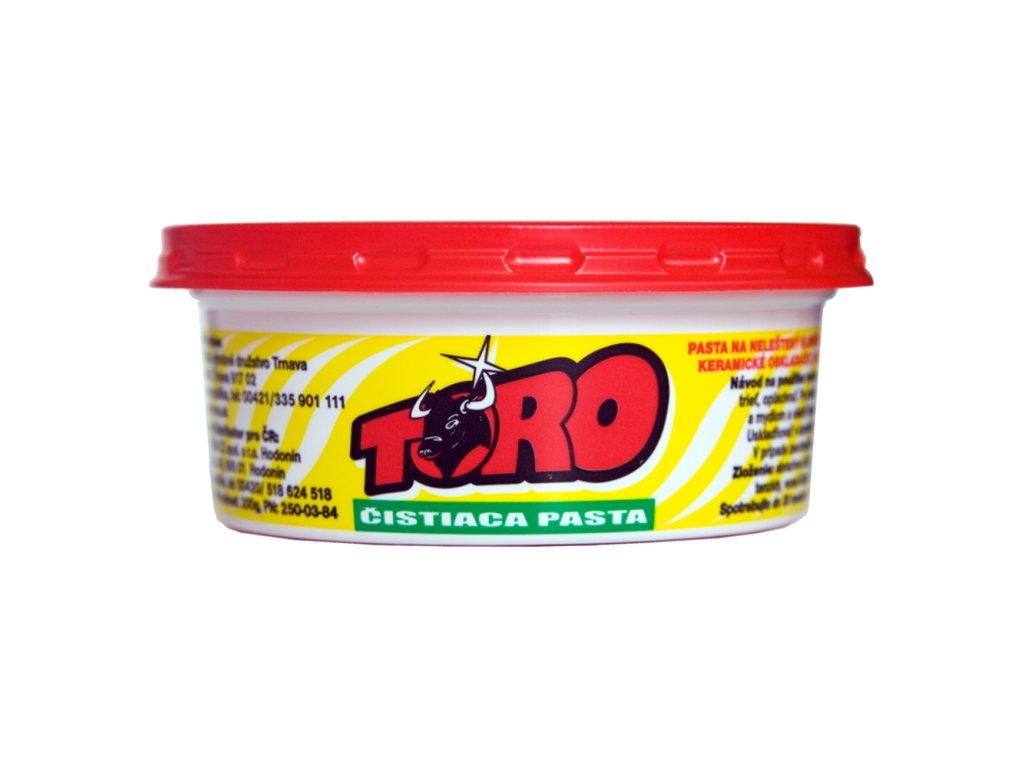 Pasta de curățare Toro este asistentul dumneavoastră pentru curățenia zilnică a locuinței. Această pastă eficientă îndepărtează toată murdăria arsă, grăsimea și mizeria din bucătării și băi. Pasta poate fi folosită pentru curățarea vaselor din aluminiu, a plăcilor ceramice, a chiuvetelor, a căzilor de baie. Nu utilizați pe suprafețe din plastic și vopsite ! Dacă pasta se usucă, poate fi completată cu apă.