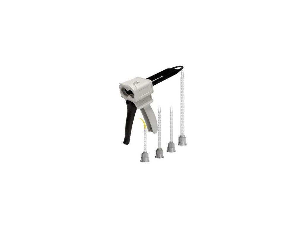 Pistol de extrudare special pentru două cartușe 2 x 25 ml. Împreună cu accesoriul de amestecare 10583, adezivii epoxidici UHU (10584, 10585) pot fi utilizați pentru procese de lipire continuă în producția industrială. DOMENIU DE APLICARE: Pentru cartușe UHU și alte cartușe cu un conținut de 2 x 25 ml. INSTRUCȚIUNI DE UTILIZARE: Asamblarea pistolului: Pistonul negru de extrudare se introduce în corpul pistolului cu partea frontală. Cartușul se introduce în partea frontală a pistolului de extrudare și se fixează cu siguranța. Capacul galben de pe cartuș se deșurubează (blocare baionetă). Accesoriul de amestecare 10583 este atașat. Acum este posibil să începeți extrudarea adezivului, care este deja amestecat în raportul corect de amestecare. După terminarea lucrării, accesoriul de amestecare trebuie îndepărtat și eliminat conform reglementărilor. Înainte de a începe un nou proces de lipire, trebuie utilizat un nou accesoriu de amestecare. NOTĂ: Pentru adezivul epoxidic UHU plus endfest 300, care are un timp de lucru deschis, accesoriul trebuie înlocuit după 90 de minute de lucru. În cazul unei întreruperi tehnice, procesul va continua. Acest lucru economisește accesoriul de amestecare.Parametri suplimentari