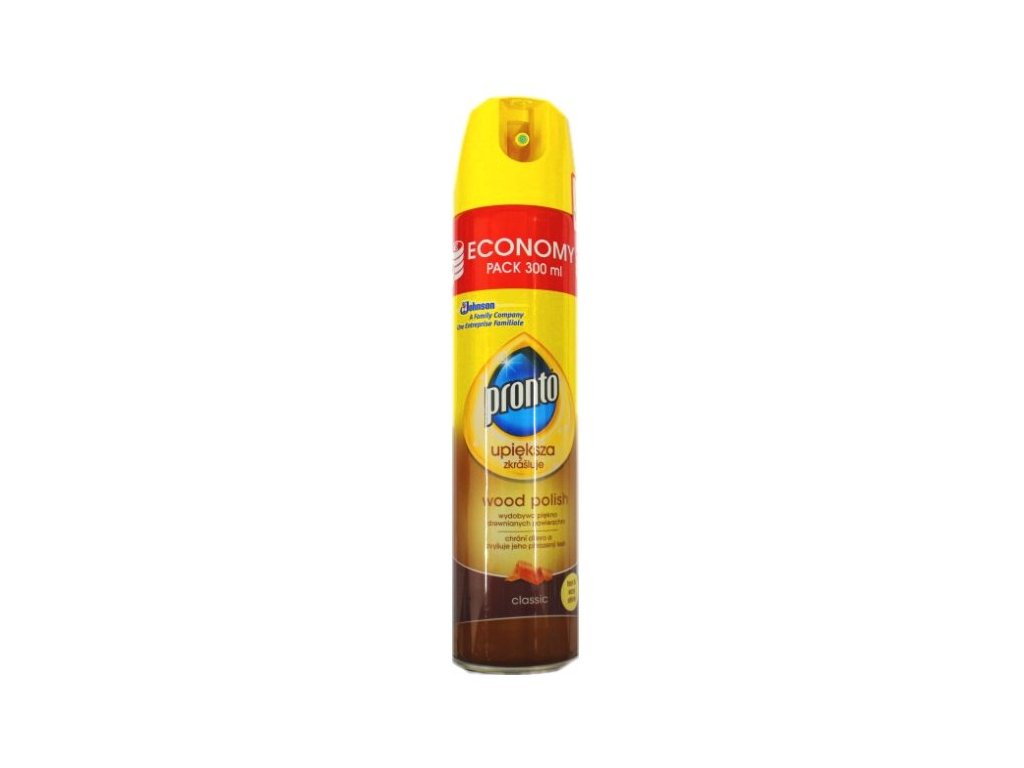 Lustruirea de mobilă Pronto Wood Classic cu ceară de albine protejează și întreține toate suprafețele din lemn prin utilizare regulată și le conferă un luciu natural. Îndepărtează perfect praful, petele și amprentele. Conține ingrediente antistatice care împiedică depunerea prafului. Curăță și îndepărtează delicat praful de pe metal, lemn, sticlă și electronice (cu excepția ecranelor cu plasmă/LCD) și creează o strălucire fără urme. Nu este potrivită pentru utilizarea pe lemn netratat.