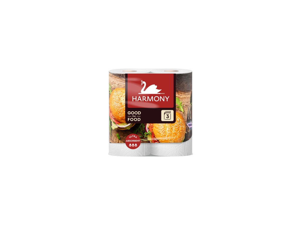 Prosoape de hârtie Harmony Good For Food Burger cu 3 straturi, 16,5 m, 2 role