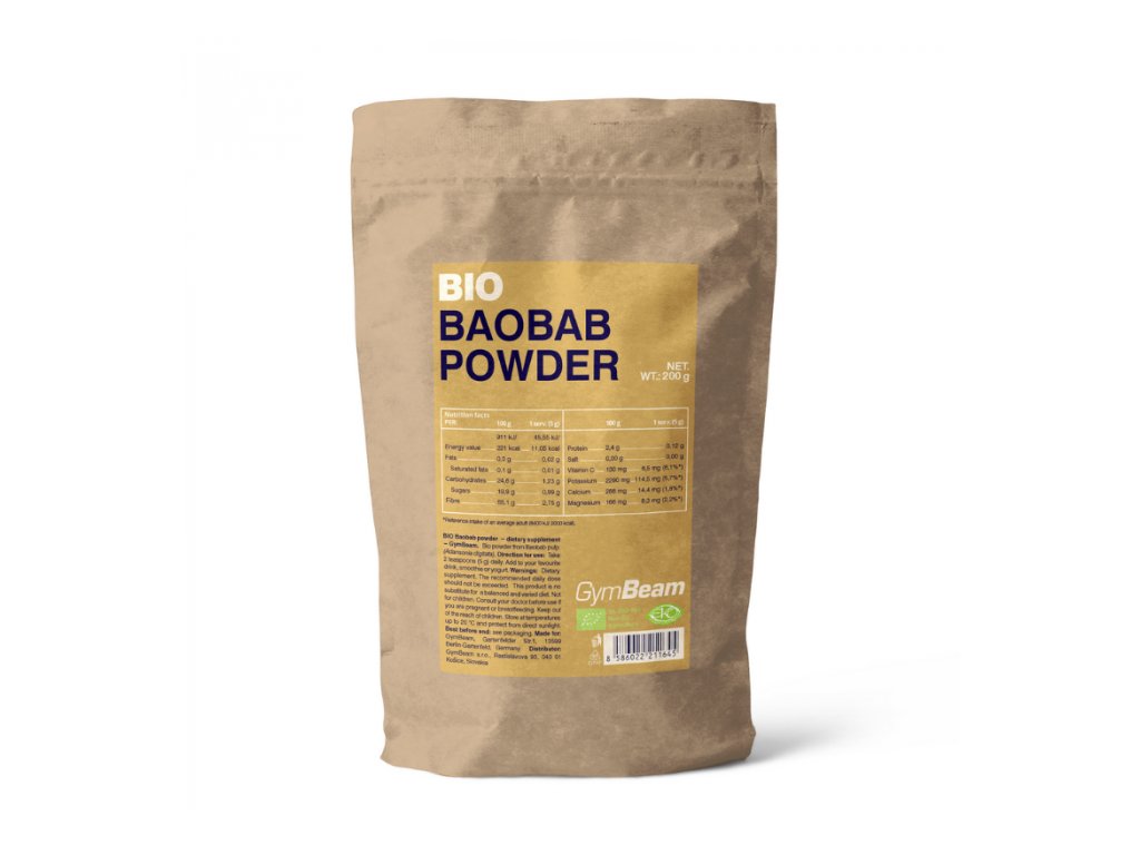 Pudră BIO de Baobab de cea mai înaltă calitate biologică obținută din fructele arborelui Baobab african (Adansonia digitata), care sunt pe bună dreptate numiți fructele viitorului. Sunt pline de substanțe benefice, precum fibrele. Pudra se obține din fructe prin simpla cernere a miezului lor, care la rândul său are o formă pulverulentă - este un grup de mici formațiuni pulverulente.