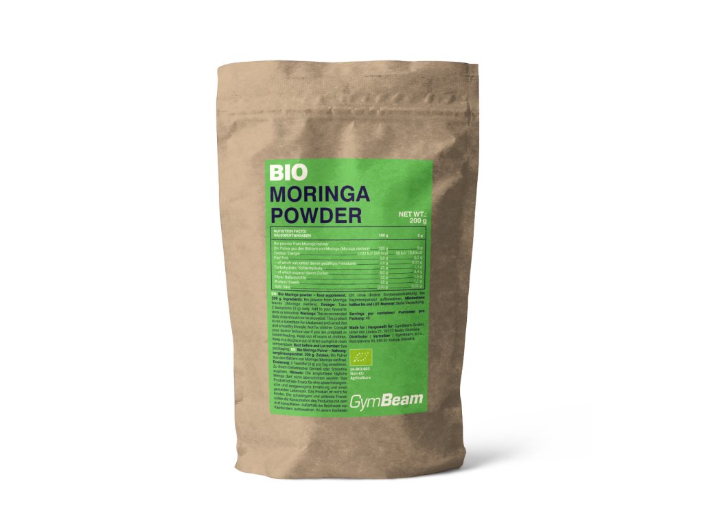Pudra BIO de Moringa este obținută din frunzele arborelui Moringa oleifera , cunoscut de secole. Este cunoscută și sub numele de pomul vieții de către multe culturi . Marele avantaj al acestei pudre este conținutul ridicat de fibre și proteine , care contribuie la creșterea și menținerea masei musculare și la menținerea sănătății oaselor. Acesta este și motivul pentru care pudra BIO de Moringa este și un superaliment . În plus, vă va cuceri prin forma sa practică și ușor de utilizat. Poate fi adăugată în smoothie-uri, terciuri și alte preparate, care vor deveni brusc și mai sățioase.