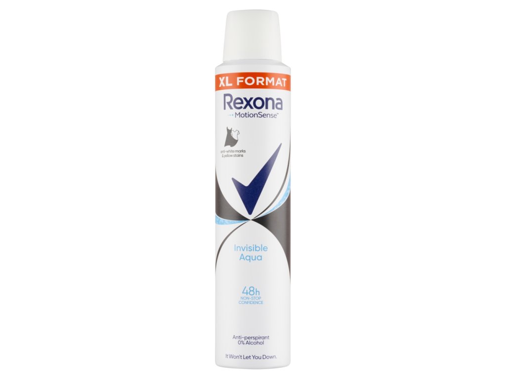 Rexona DEO Spray Invisible Aqua este conceput pentru a oferi protecție fiabilă împotriva transpirației și mirosurilor neplăcute timp de până la 48 de ore. De asemenea, protejează hainele de petele albe și galbene, fiind ideal pentru utilizarea zilnică.