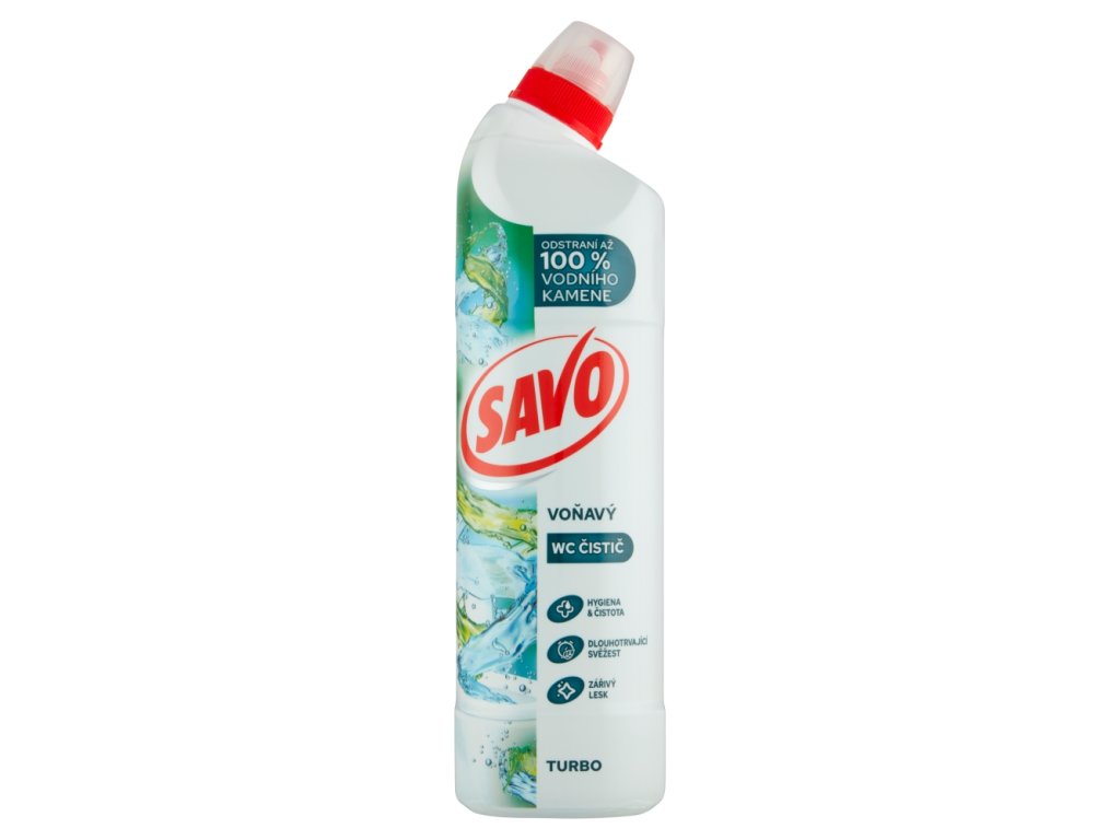 Savo WC Turbo îndepărtează eficient calcarul din toaletă și curăță chiar și murdăria adânc încrustată. Toaleta este igienic curată. Mirosul plăcut va lăsa toaleta proaspătă pentru o perioadă lungă de timp.