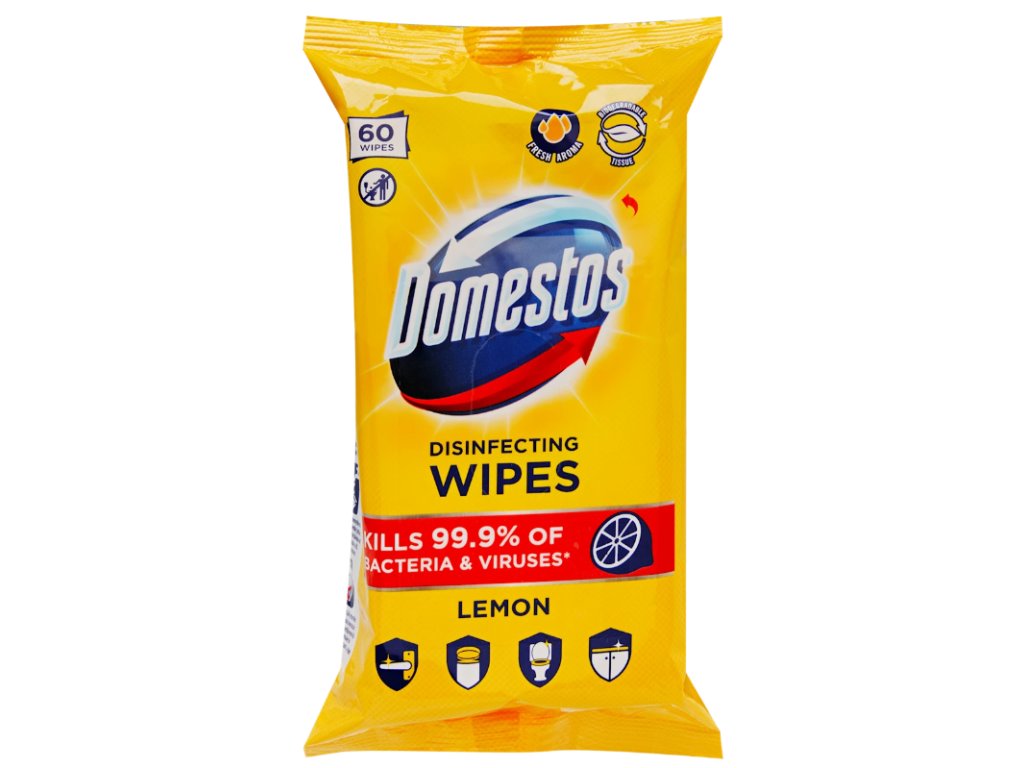 Șervețelele dezinfectante cu lămâie Domestos sunt o soluție practică pentru curățarea rapidă și eficientă a diferitelor suprafețe din casă. Au efect bacteriostatic, ajutând la reducerea creșterii bacteriilor și lăsând suprafețele igienic curate și proaspete, cu un parfum de lămâie. Șervețelele sunt depozitate într-un ambalaj resigilabil care previne uscarea și le face ușor de utilizat acasă și în deplasare.