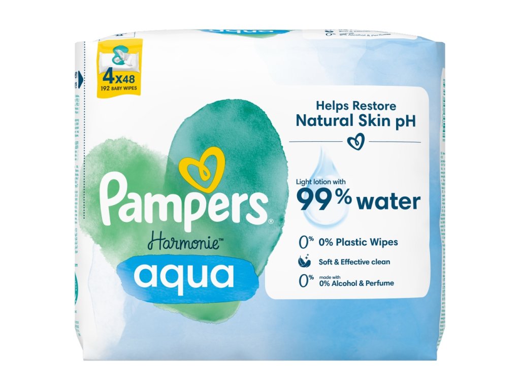 Șervețele umede de curățare Pampers Harmonie Aqua pentru bebeluși, 4 x 48 buc.