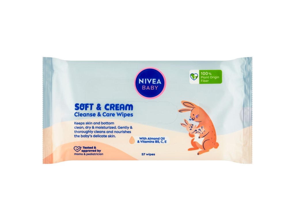 Șervețele umede Nivea pentru bebeluși (57 buc/folie) moi și cremoase
