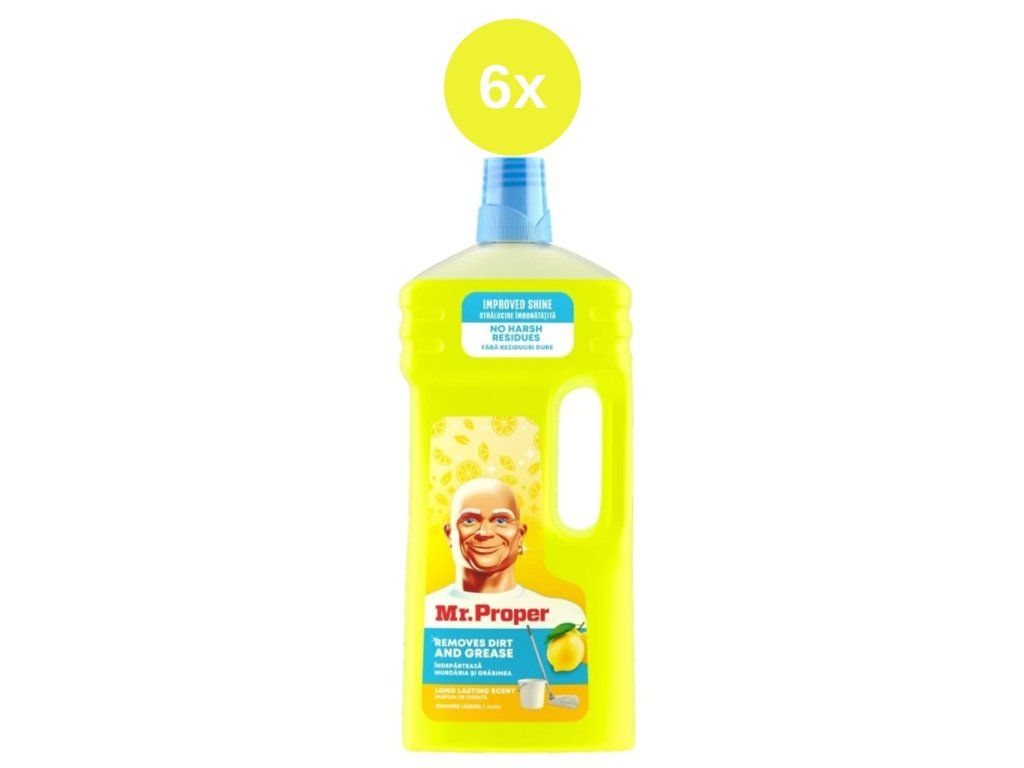 Mr. Proper Lemon este un detergent universal potrivit pentru curățenia zilnică a întregii case. Îndepărtează eficient grăsimea, murdăria și praful uscat, lăsând suprafețele curate și strălucitoare, fără urme. Datorită parfumului său proaspăt de lămâie, parfumează și interiorul.
