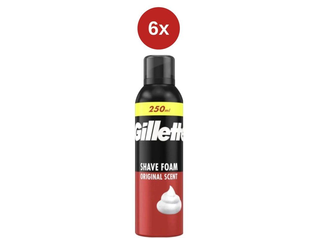 Spuma de ras Gillette Original este un aparat clasic dovedit pentru un bărbierit rapid, confortabil și neted. Cu consistența sa bogată și cremoasă, creează o spumă groasă care înmoaie barba și pregătește pielea pentru o alunecare ușoară a aparatului de ras.