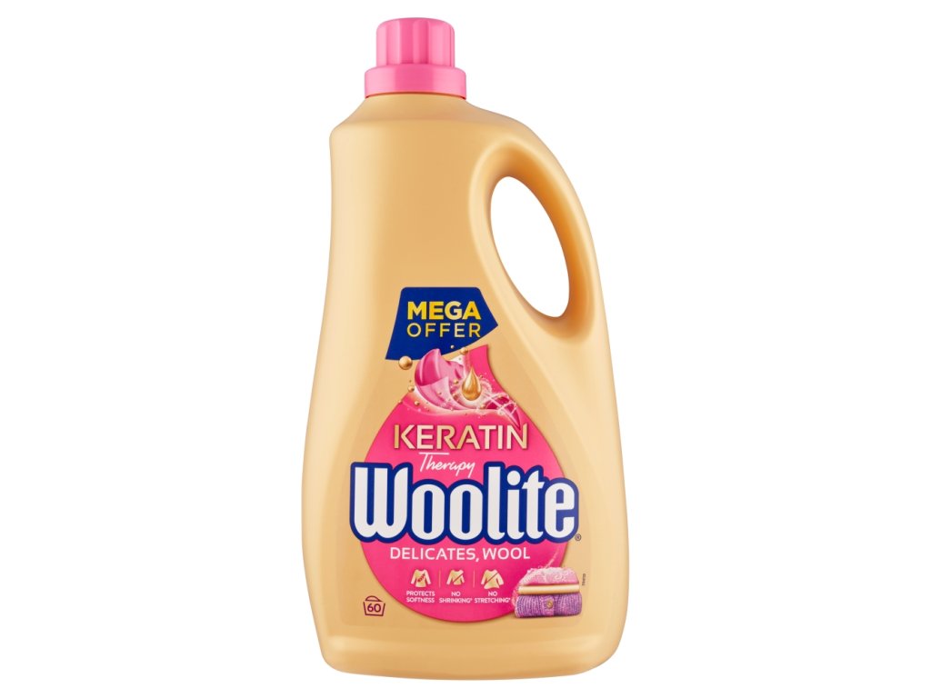 Woolite pentru rufe delicate și din lână cu keratină, care restabilește rezistența fibrelor. Rezultatul este rufe curate și regenerate după fiecare spălare. Woolite Delicate este special conceput pentru rufe delicate și haine din lână. Datorită compoziției sale, protejează textilele de pierderea formei și de formarea de scărpuiri. Rufele rămân moi după fiecare spălare.